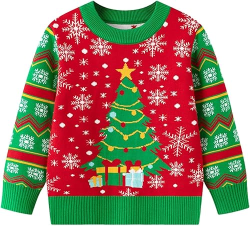 Kids Cute Christmas Sweater Winter Xmas Tree Graphic Knitted Ugly Sweaters Girls Funny Christmas Pullover Sweatshirt