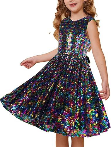 • Sparkle Sequin Dress: Girls party dress made of 98%Polyester+2%Viscose,skin-friendly sequin fabric, no itching or see-through. Middle stretch ensures both comfy and a flattering fit. Glittering appearance and big flowy, every detail shows elegance and grace.