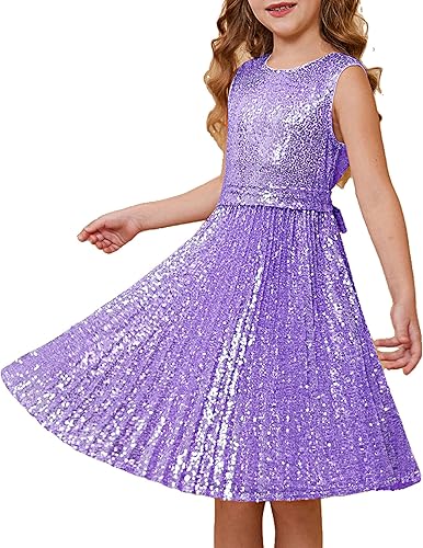 Sparkle Sequin Dress: Girls party dress made of 98%Polyester+2%Viscose,skin-friendly sequin fabric, no itching or see-through. Middle stretch ensures both comfy and a flattering fit. Glittering appearance and big flowy, every detail shows elegance and grace.