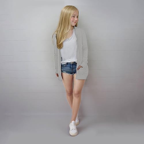 Girls Cardigan Sweaters 10-12 Lightweight Open Front Sweaters for Girls Cute Long Sleeve Oversized Outwear Coat(01#gray,5-6 Years)