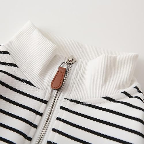 Kids Boys Girls Turtleneck Striped Quarter Zips Sweater Fashion Long Sleeve Knit Pullover Sweaters Tops Soft Aesthetic Tops(White,3-4T)