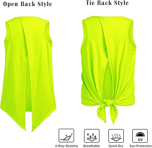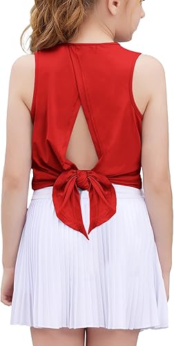 Unique:Open or tie back athletic tank tops for kid girls, cute and sports, 2 styles for different dress up, V-shape open back when wear natural, and have bowknot when tie the back hem