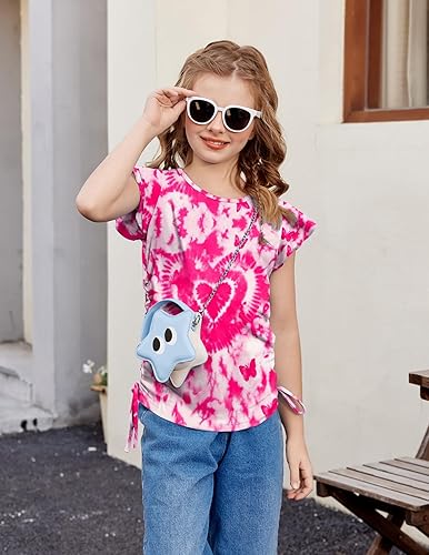 DESIGN:These sleeves of girls short sleeve T-shirts designed with flying sleeves,The side of the top is designed as Ruched Knot(Similar to drawstring design but fixed),Very novel and slim!designed to keep your girl fashion all day long!!!