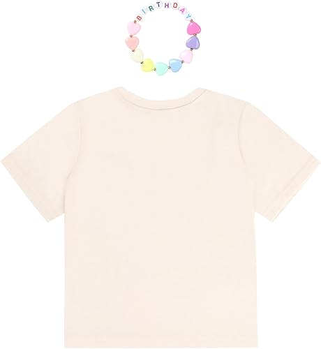 Girls' Birthday Girl Letter Print T-Shirt with Bracelet, Pink, Size 4-12Y, Short Sleeve(Apricot Birthday Girl,7-8 Years)