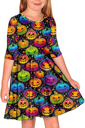 Girls Halloween Theme Dresses feature high waist skater and twirly design, vibrant Halloween theme prints to add more fun to your girl's halloween wear