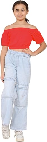 Loxdonz Girls Short Sleeve Crop Top Kids Off Shoulder Top T-Shirt Tee Tops