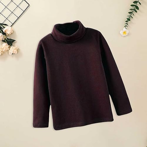 Toddler Baby Girl Boys Basic Turtleneck T-Shirt Kid Solid Color Cotton Long Sleeve Pullover Blouse Top(Coffee,5-6 Years)
