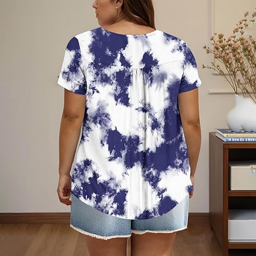 Plus Size Spring Tops for Women Summer Short Sleeve Dressy Casual Pleated Front Scoop Neck Shirts Floral Blouses(J027 White,X-Large)