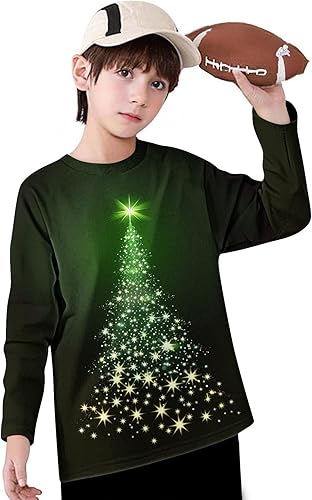 Christmas Shirts for Kids Girl 3/4 Length Sleeve Tunic Blouses Xmas Tree Cute Print Tops Crew Neck Graphic Tees(Multicolor,11 Years)