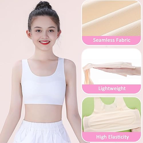 No Hooking or Wires For Easy On & Off: Pinch & Irritation-Free Cotton Bra for Amazing Comfort. A Simple Pull-On Design Makes These Girls Bras a Breeze to Add to Your Morning Routine. Put on The Crop Top Just Like not wearing any clothes! Best Starter Training Bras for Girls.