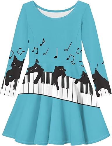 ☀DESIGN: Crew neck,long sleeve,A-line,knee length,pleated,flared,swing and twirly hem,pullover,casual midi length dress,swing party dress,great for winter,spring,autumn paired with coats and leggings.Variety pattern to choose,like sunflower,cow,strawberry,frog,mushroom,wolf,Christmas Elf,Halloween Skeleton,Thanksgiving pumpkin,turkey,American Flag,Mermaid Etc.