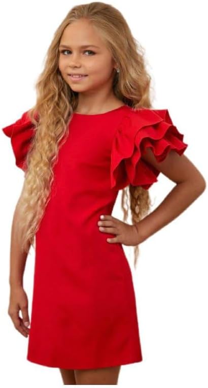 Styles and Features: Formal stylish summer dress is decorated with lush flounces on the sleeves, Ruffle Trim Flutter Sleeve, Back Zipper, Round Neck, Above Knee Length.