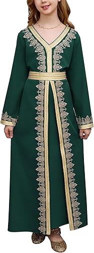 Occasions: Kids long sleeve v neck lace prayer dress middle east arabic kaftan dress dubai islamic eid church robe toddler girl muslim clothes fit for Muslim costume, Eid, Ramadan, prayer, ceremony, vacation or other occasions, also a great gift to your daughter, niece