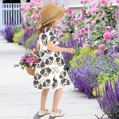 Toddler Girls Dress Short Sleeve A-Line Casual Clothes for Home Party Beach Sundress 2-8T(Bernese Mountain Dog,3T)