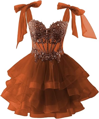 • Features:This homecoming dress features sheer organza straps tied in bows, a corset - style bodice with intricate lace embroidery, and a tiered tulle skirt. The romantic design blends delicate details and feminine charm.. You will receive many compliments on this beautiful dress!