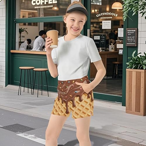 Girls Athletic Shorts Ice Cream Kids Casual Gymnastics Yoga Dance Biker Shorts Elastic Waist with Pockets 7-15Y(Multi20-b02,X-Small)