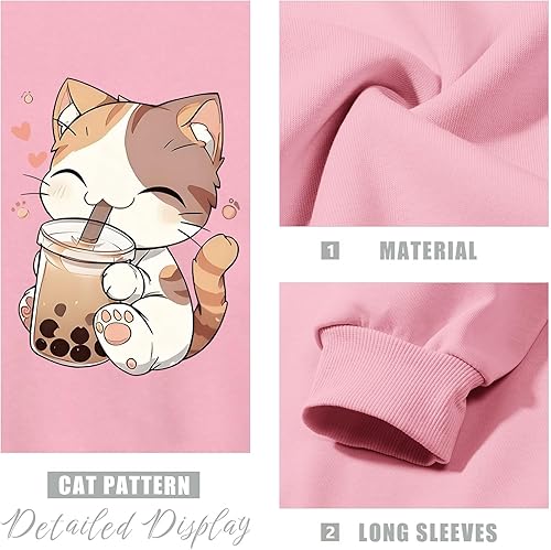 Feature: Cute sweatshirts for girls 10-12, kawaii bubble milk tea cat print, round neck, long sleeve, girls kawaii graphic hoodie , this girls cat sweater is comfortable and fitted. cat sweatshirt for girls is cute and charming
