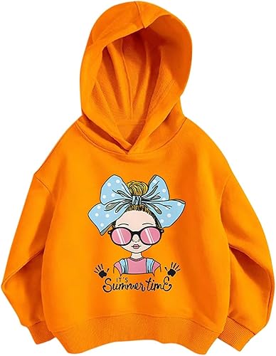 Girls Hoodie Cozy Hoodie Kids Clothes Pullover Sweatshirt With Hood Fashion Casual Tops Baggy Thin Fuzzy Fleece Jacket(Orange,4-5T)