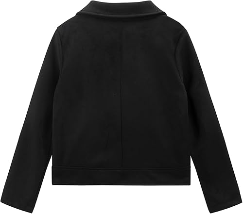 Noomelfish Girls Faux Suede Leather Jackets Kids Motorcycle Bomber Coats Fall Outfits Winter Clothes (5-14 Years)(Black,11-12 Years)