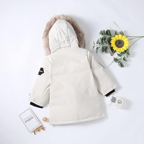Girls Boys Hooded Winter Coat Warm Parka Down Jacket with Faux Furry Hood Toddler Kids Puffer Coats Outdoor(White,7-8 Years)