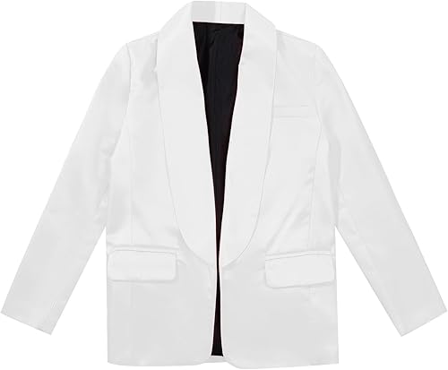 Girls Solid Color Casual Little Suit Jacket for Big Kids Teenagers School Photos Formal Events Party Wear(White,9-10Years)
