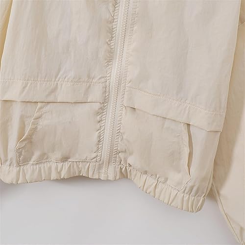 Girls Boys Windbreaker Hoodies Jacket Teens Kids Zipper Lightweight Outdoor Hiking Outerwear Stylish Fall Coat(Beige,11-12 Years)