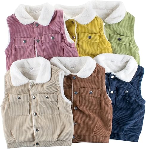 Boys Girls Corduroy Jacket Toddler Kids Sleeveless Fleece Winter Coat Vest Sherpa Lined Button Down Warm Outwear(Coffee,4-6 Years)
