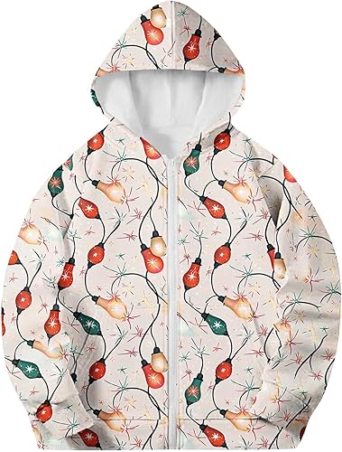 Design: The coat showcases a various Christmas themed graphic. This festive design instantly puts kids in the holiday spirit. The color scheme is warm and inviting. The overall cut of the hoodie is designed to be comfortable and allow for easy movement