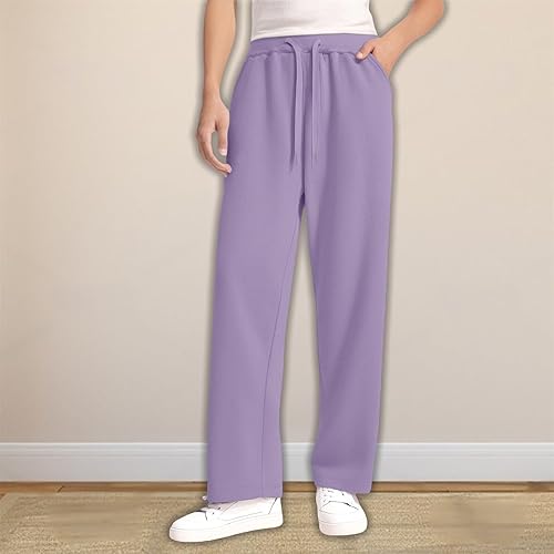 Teen Girls Straight Sweatpants Solid Color Elastic Waist Stretchy Sport Pants Trendy Comfy Joggers Casual Soft Trouser(Purple,12-13 Years)