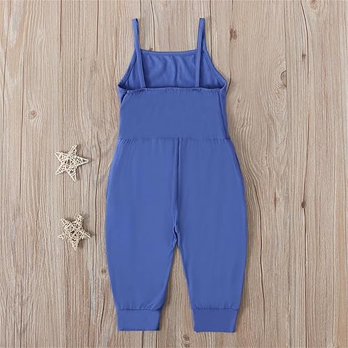 Toddler Girls Backless Jumpsuits Loose Overalls Wide Leg Harem Long Pants Sleeveless Rompers Spaghetti Strap Jumpsuits(Blue,4-5 Years)