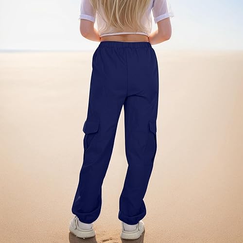 Girls Casual Pants Elastic High Waisted Work Running Joggers Pants Wide Leg Straight Leg Oversized Loose Fit Trousers(Navy,5-6 Years)