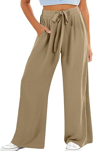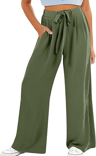 Girls High Waisted Pants Wide Leg Trouser Palazzo Pants Elastic Waist Pant Lightweight Pant Casual Vacation Clothes