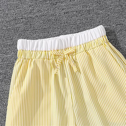 Girls Teens Striped Pants Straight Wide Leg Elastic High Waist Trousers Y2k Streetwear Casual (Yellow, 10 Years)