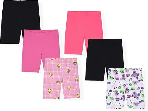 Pack of 6: Includes 6 versatile biker shorts in assorted colors: Allover Print, White, Heather Grey, and Lavender – perfect for mixing and matching all week long.