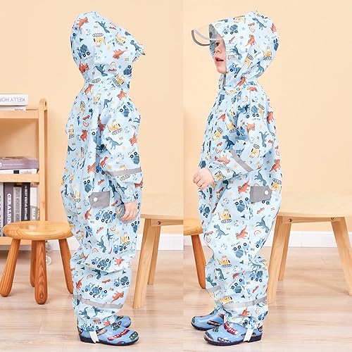 Kids Poncho Raincoats Waterproof Rain Jacket Hooded Toddler Boys Girls Suit Reusable Rainwear All in One Easy to Dry Blue