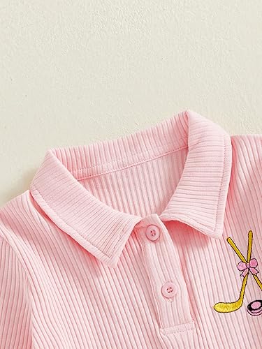 GOOCHEER Toddler Girl Ice Hockey Outfit Turn-Down Collar Long Sleeve Shirt Top and A-Line Pleated Skirt Fall Clothes Set(Pink,3-4T)