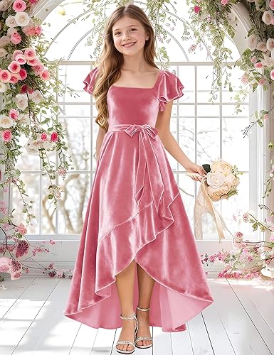 • Exquisite Design:toddler velvet dress,maxi girls holiday dresses,A-Line flower girl dress,square neck christmas dress,high-low girls' special occasion dresses,floor-length jr bridesmaid dresses with bow,ruffle sleeve pageant dresses for girls