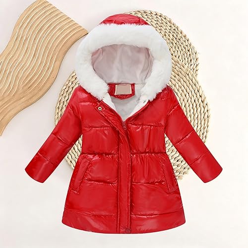 Kids Winter Coat Girls Jackets Baby Kids Puffer Jacket Winter Coats for Boys Toddler Down Jackets Hooded Warm Outerwear(Red,6 Years)