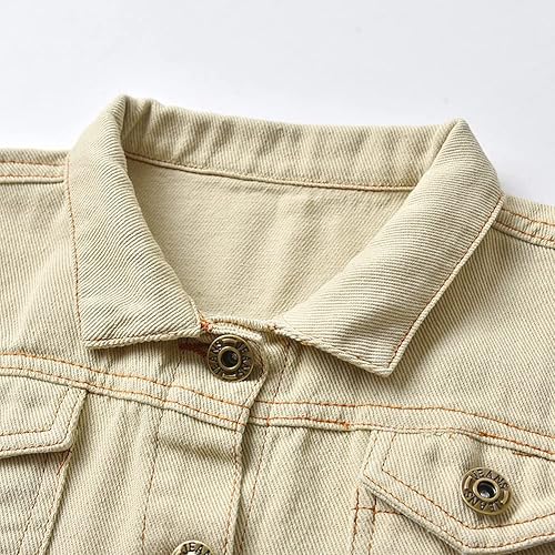IWEMEK Toddler Baby Boy Girl Denim Jackets Button Down Jeans Jacket Top Coat Ripped Cowboy Outwear Hooded Winter Fall Clothes(Off-white,5-6 Years)