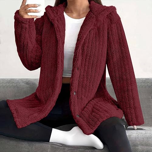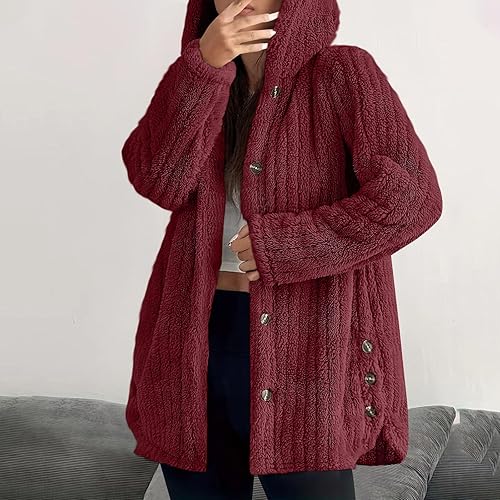 Womens Long Sleeve Jacket Hoodies Coats for Women Warm Fuzzy Hooded Plain Winter Fall Hoods 2025 Fashion Y2K(E-17 Burgundy Wine,X-Large)