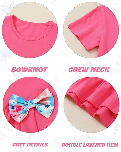 Adorable Design: The short-sleeve top features a charming ruffled hem and delicate bow detail, paired with matching floral-print capri pants. This girl clothes set creates a cute, coordinated look that’s both trendy and timeless