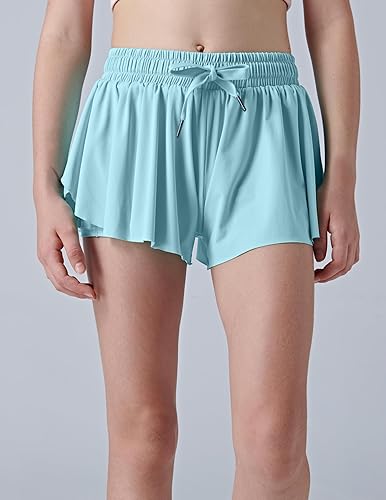 3 Pack Girls Flowy Shorts with Spandex Liner 2-in-1 Youth Butterfly Skirts for Fitness, Running, Sports(Pink/Mint/Light Lavender,X-Large)