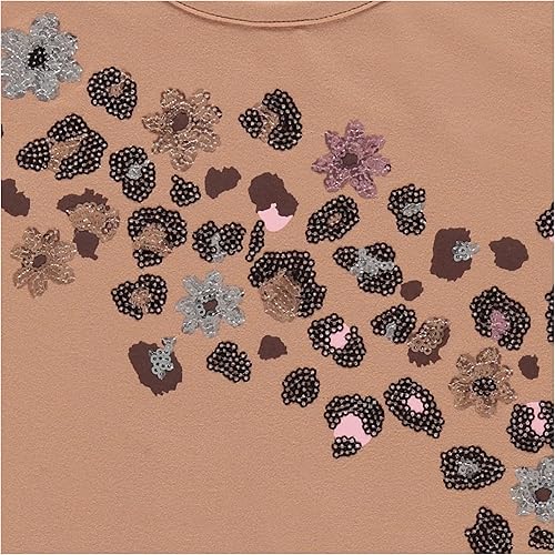 Girls Long Sleeve Fall Graphic Tops, School Sports Tees, 4 Pack Multiple Pattern Tshirts(Brown,10-12)