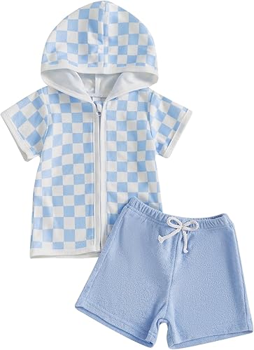 Girls Boys Terry Cloth Swim Cover Up Zip Up Hooded Coverup Tops and Shorts Set Kids Pool Beach Bathing Suit Cover-Up