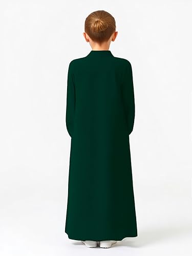 Girls Abaya Muslim Dress with Front Zipper 2 Pockets Dress Long Sleeve Solid Islamic Prayer Clothes for Kids(Dark Green,5-6 Years)