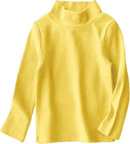 Girls Long Sleeve Shirts Soft Fuzzy Thick Warm High Collar T-Shirts Fall Winter Comfort Tunic Tops(Yellow,2-3T)