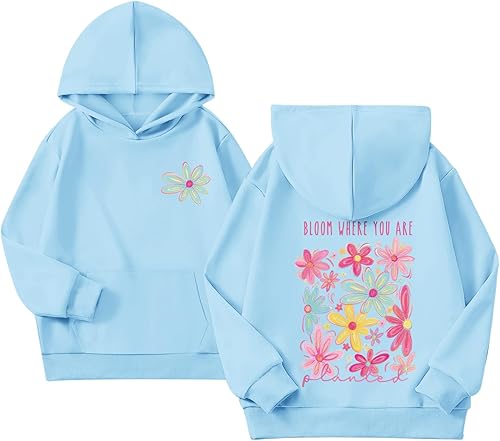 • Features: "Bloom where you are planted" letter print hoodie, girls flower hoodie, aesthetic hoodies, preppy hoodies for girls 10-12, inspirational hoodies, kids cute graphic hoodies, positive hoodies