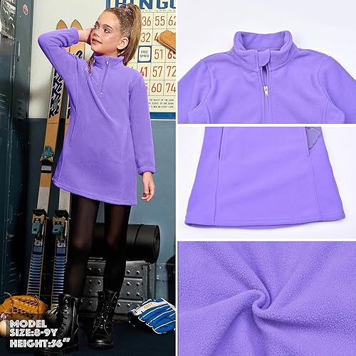 Mirawise Girls Fleece Dress 1/3 Zip Polar Long Sleeve Sweatshirt Stand Collar Fall Winter Pullover Dress with Pockets(Purple,10-11 Years)