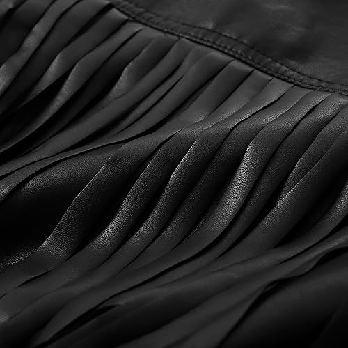 Girl's tassel cropped PU leather jackets, notched lapels, bomber jacket in coated, dropped shoulders and long sleeves, a diagonal zipper at front, solid-color, cropped short length, diagonal welt front pockets, fully fringe back design