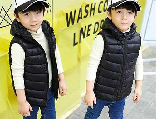 Windproof & Warm: Hooded Vest The Puffer Vest Features Elastic Hood; Stand Collar; Zipper Closure; 2 Insert Pockets, Warmth. Sleeveless Jacket, Giving Kids More Stretch, Let them Play, Run and Have Fun. This Vest for Girls Boys will be Your Baby's Favorite Outerwear in Cold Weather.